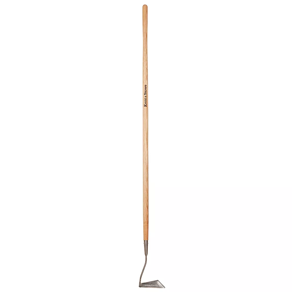 Kent & Stowe Long 3 Edge Hoe manufactured from stainless steel & ash wood.